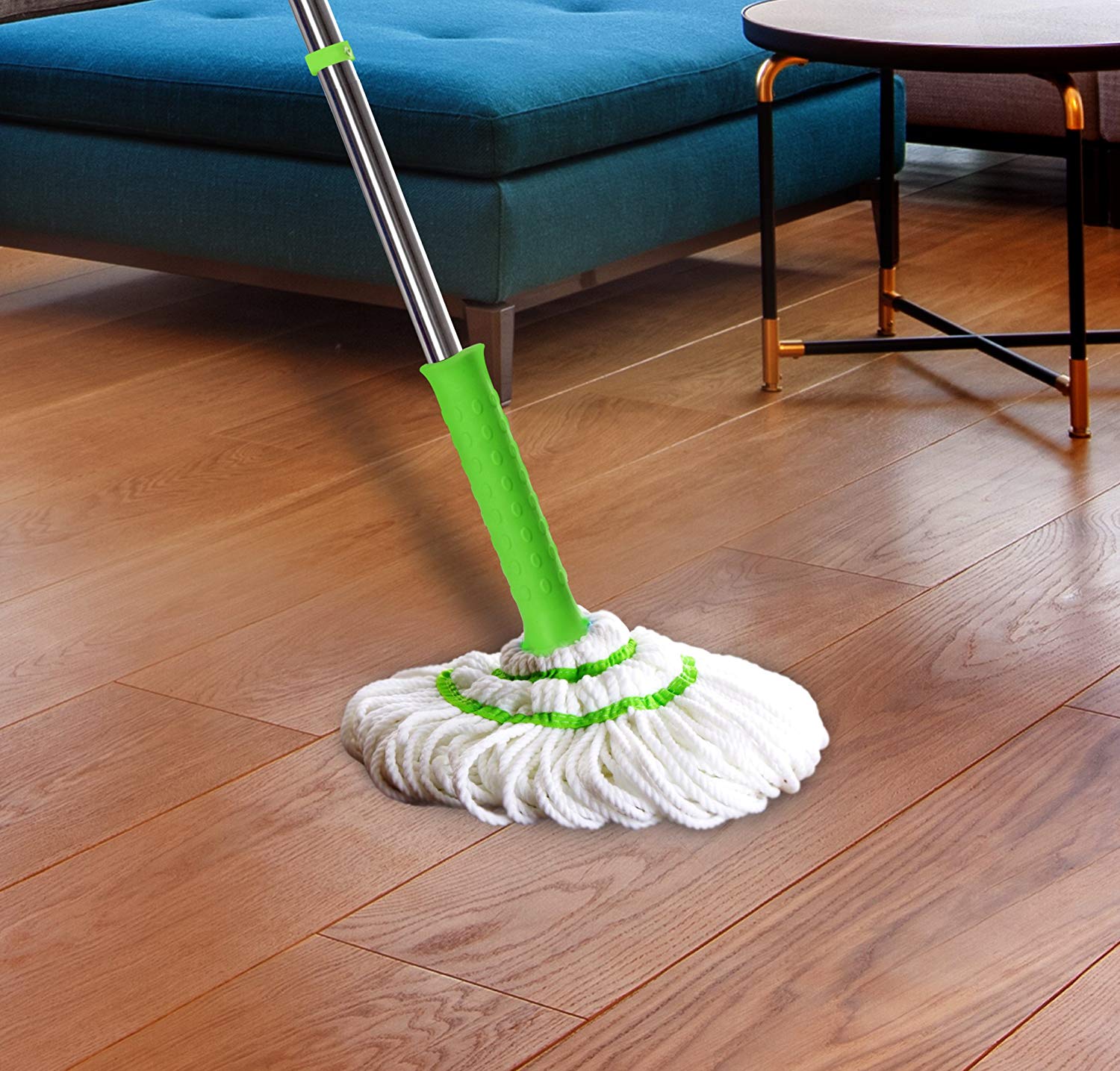 - Wash the twist mop with water and dry it absolutely by shaking or punching them to oust any impurities inside